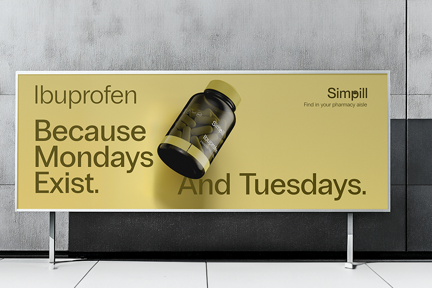 We created SIMPILL, a brand built to make over-the-counter medication simple, accessible, and clear. From the ground up, we developed a strategic brand identity, including brand guidelines, tone of voice, and packaging. The campaign highlights SIMPILL’s no-nonsense approach to medicine, with straightforward packaging, color-coded categories, and easy-to-understand symbols. Our OOH and social executions use punchy, direct messaging to grab attention and make healthcare decisions easier.I was responsible for the original idea behind SIMPILL, developing the brand concept, messaging, and tone of voice. As the copywriter, I crafted the brand’s communication across all platforms, ensuring a consistent and engaging identity. Additionally, I contributed to design decisions, helping shape the visual execution to align with the brand’s mission.